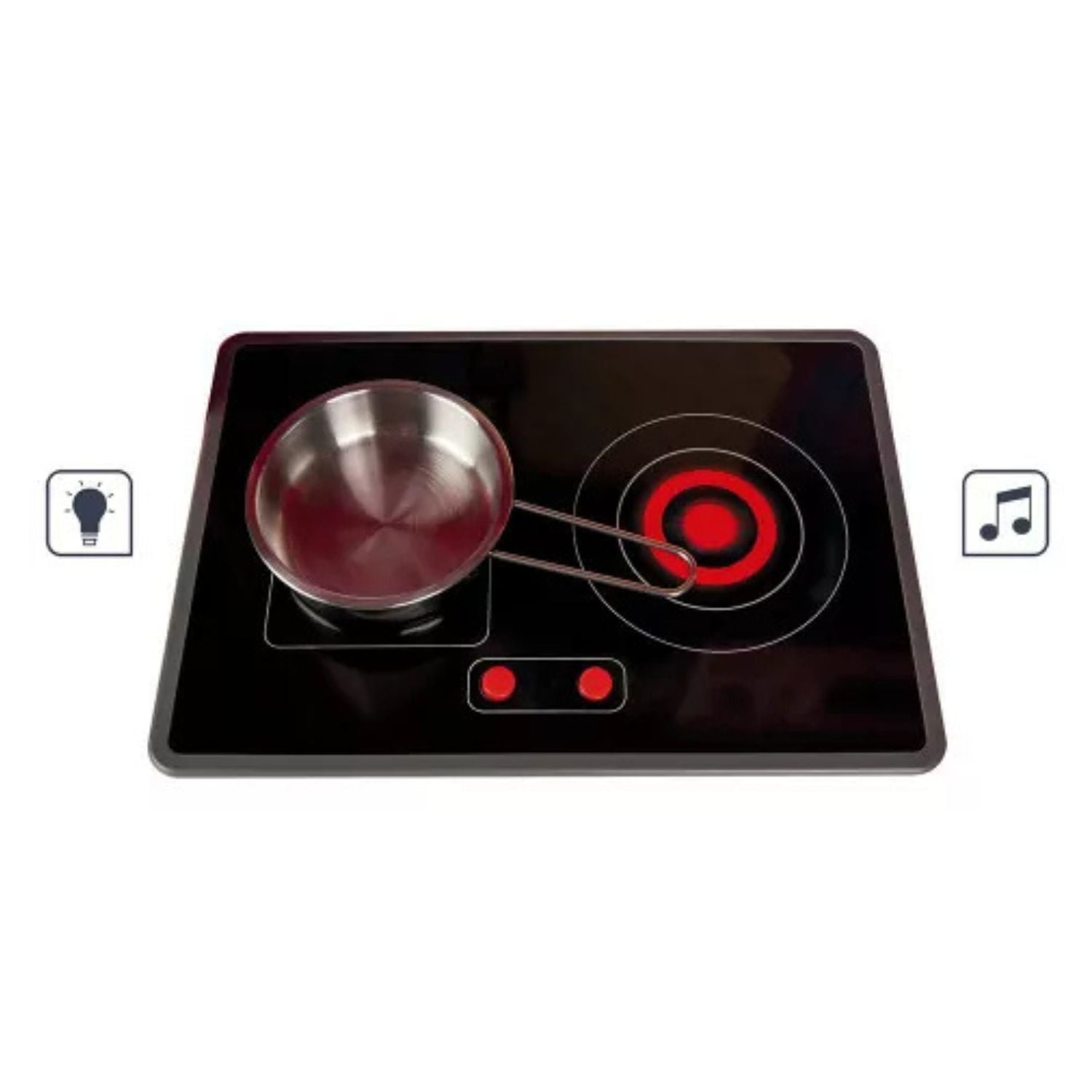 Janod Reverso wooden kitchen is a dream come true for kids who want to cook and for people who live in the house. One side has a cooker and the other side has a washing machine for laundry. This modern wooden kitchen will light up and make boiling sounds, which will make it more fun to play with. It has soft colours and curved edges, so it's safe for more than one child to play with at once. It also comes with 7 metal accessories so you can start cooking right away