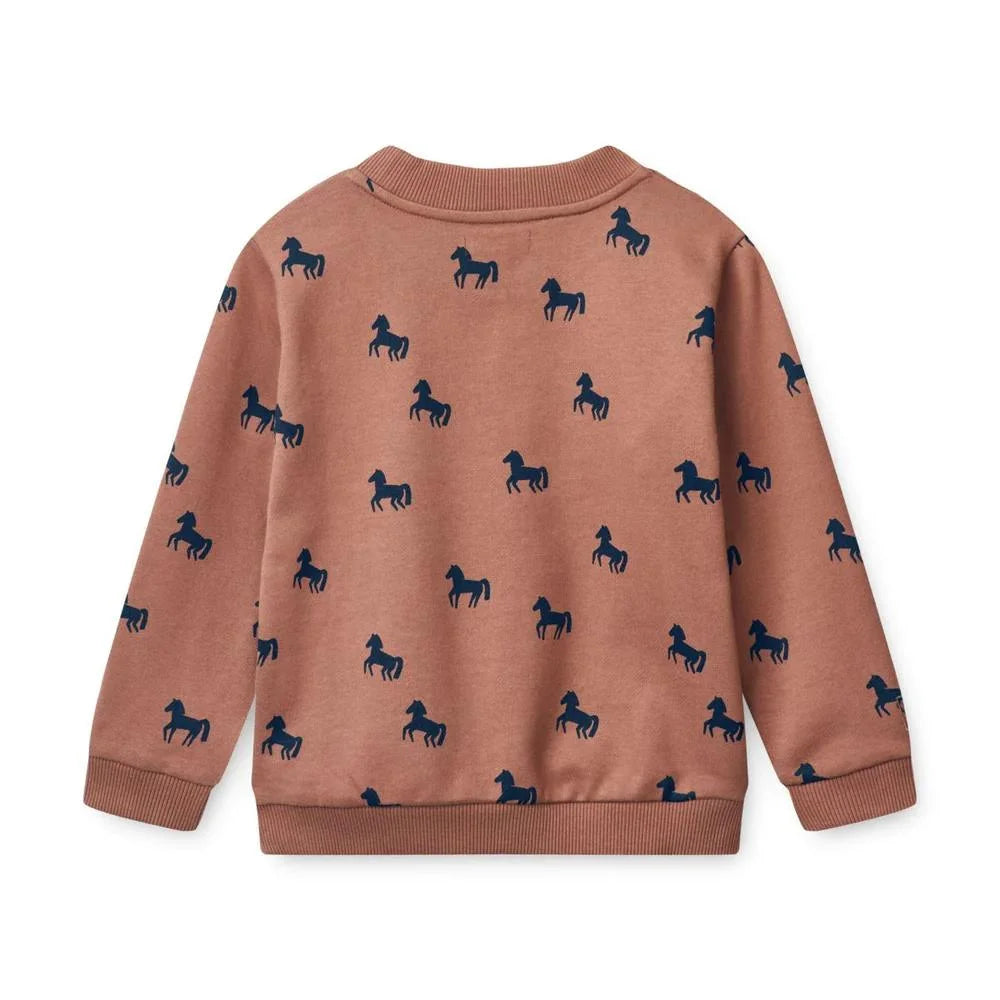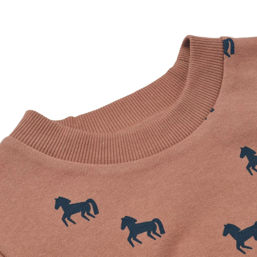 Looking for an organic crewneck cute and cosy sweatshirt for your little one? The Thora Horses printed sweatshirt will not only keep kids snug in chilly weather but it will make them look extra adorable. The cute horse print sweatshirt for kids will complement outfit. Pair it with a pair jeans, winter stockings, and wellies for a complete winter look!