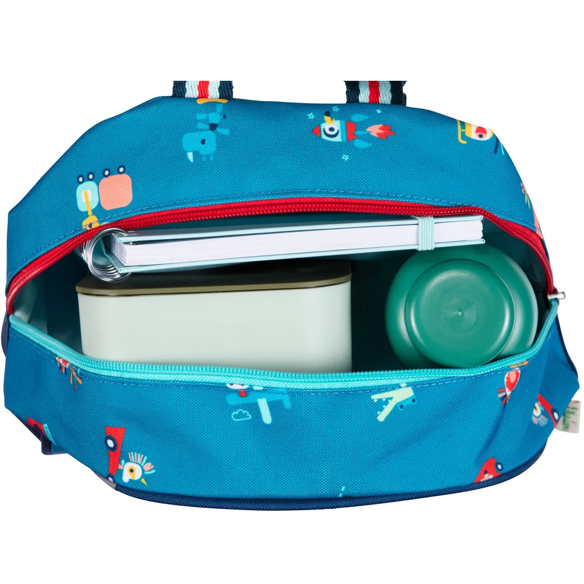 This backpack for school is made from recycled materials. It has a roomy design to hold books, snacks, and other necessities. The lightweight of this kids' rucksack makes it great for everyday adventures.