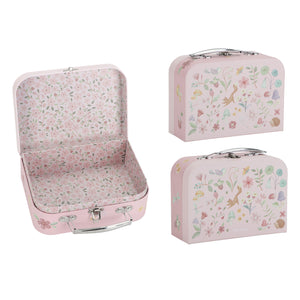 Little dutch suitcase sets designed for little explorers. Each set includes two play suitcases, one large and one small. It features beautiful themed illustrations. Each suitcase has a metal handle and metal lock. They are easy for little hands to carry and perfect for storing toys, crafts, or small treasures. It is the perfect pretend play gift for ages 2 years and older.