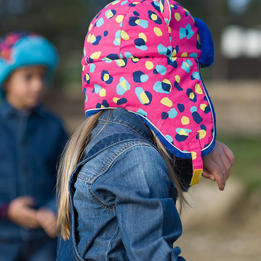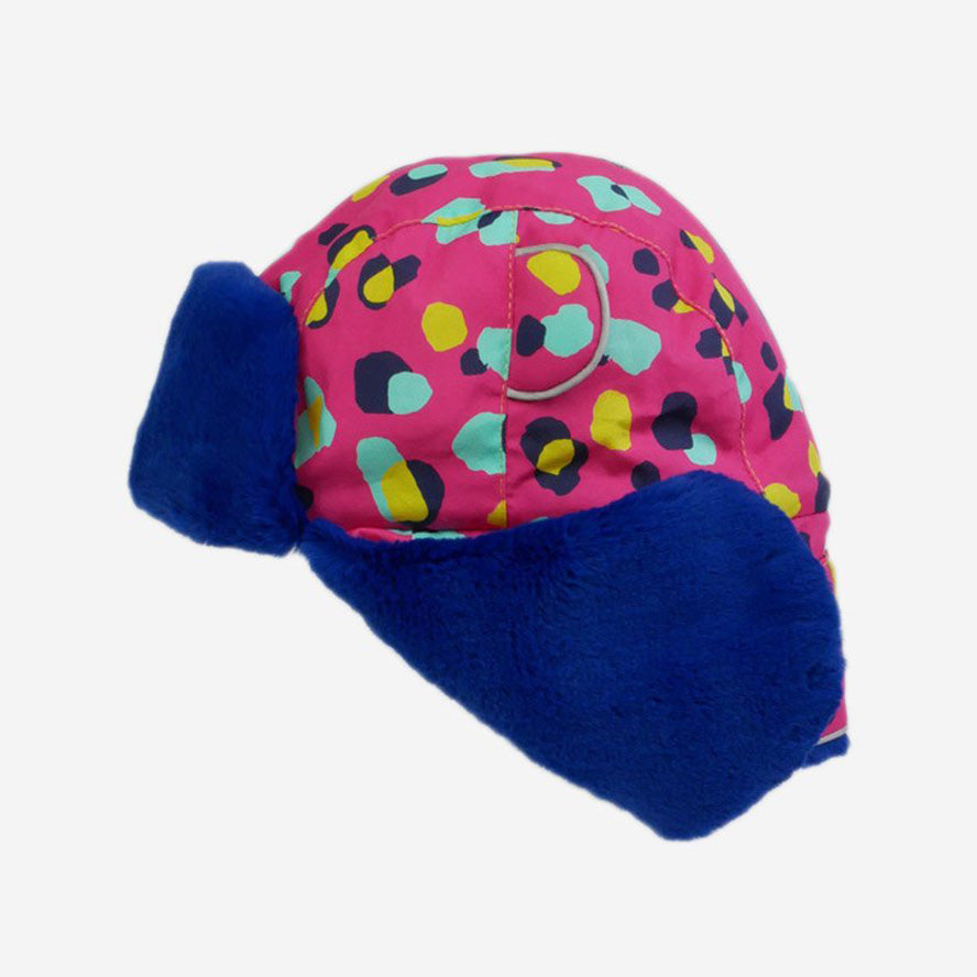This little hotdog watson pink leopard trapper hat is a fashionable way to keep your child warm and dry. The cotton fabric on the outside is water-resistant, so snow just rolls off. It has soft Thinsulate and jersey lining that keeps heads warm without being too heavy or big.
