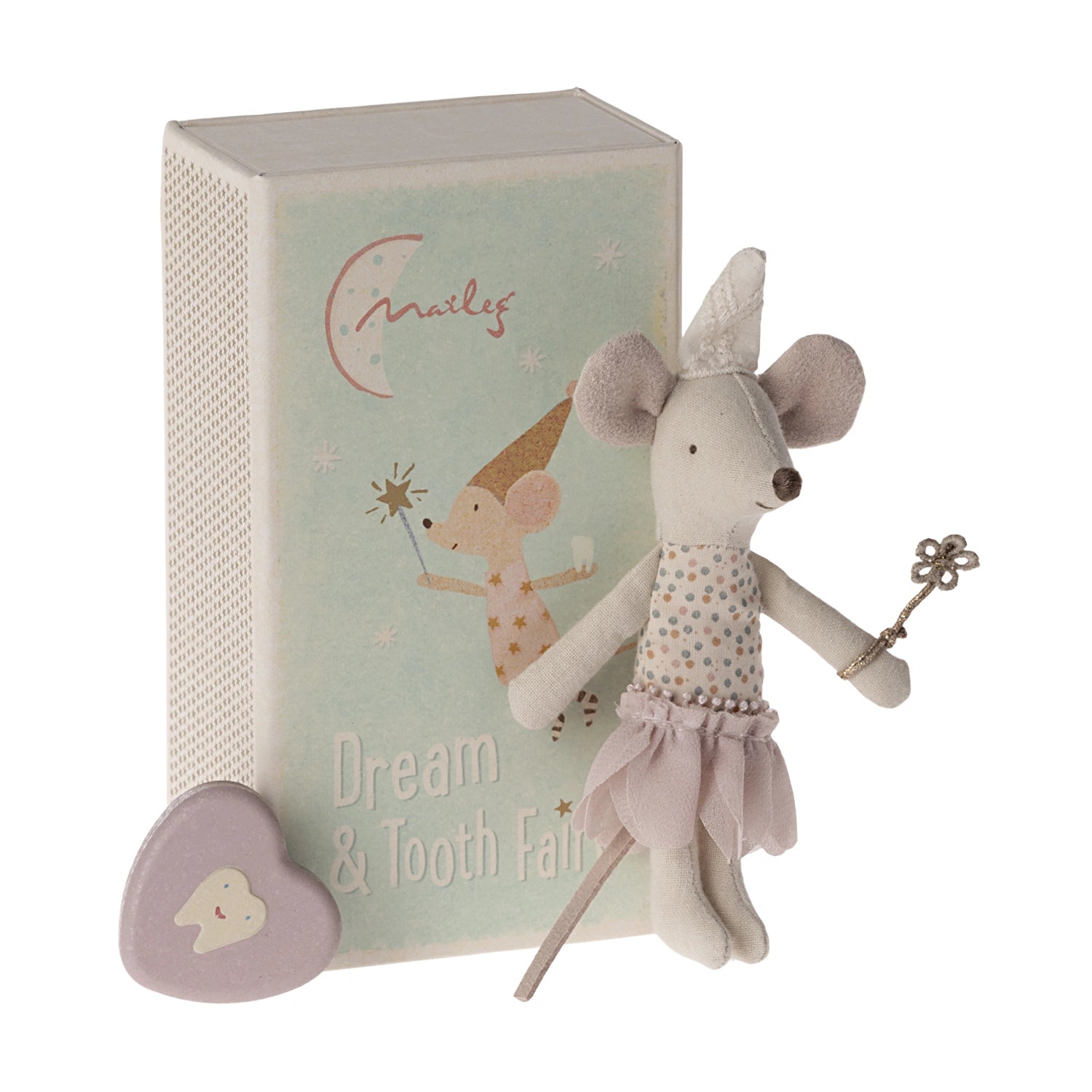 Maileg tooth fairy mouse is a delightful children's gift for celebrating a child’s first lost tooth. With her charming appearance and practical tooth box, she turns a childhood milestone into a magical experience. This maileg mice not only encourages imaginative play but also serves as a treasured memory as your child grows.