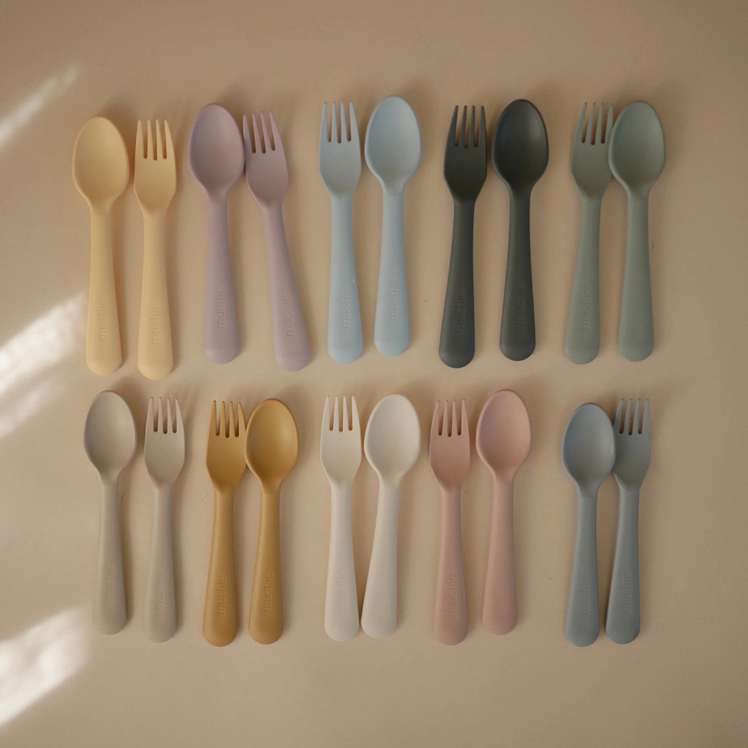Mushie Fork and Spoon Set makes mealtime easy and fun for your little one. Your child can hold it comfortably during meals because it's light and easy to hold. This baby cutlery set is stylish and useful, and it will make your table look more elegant.