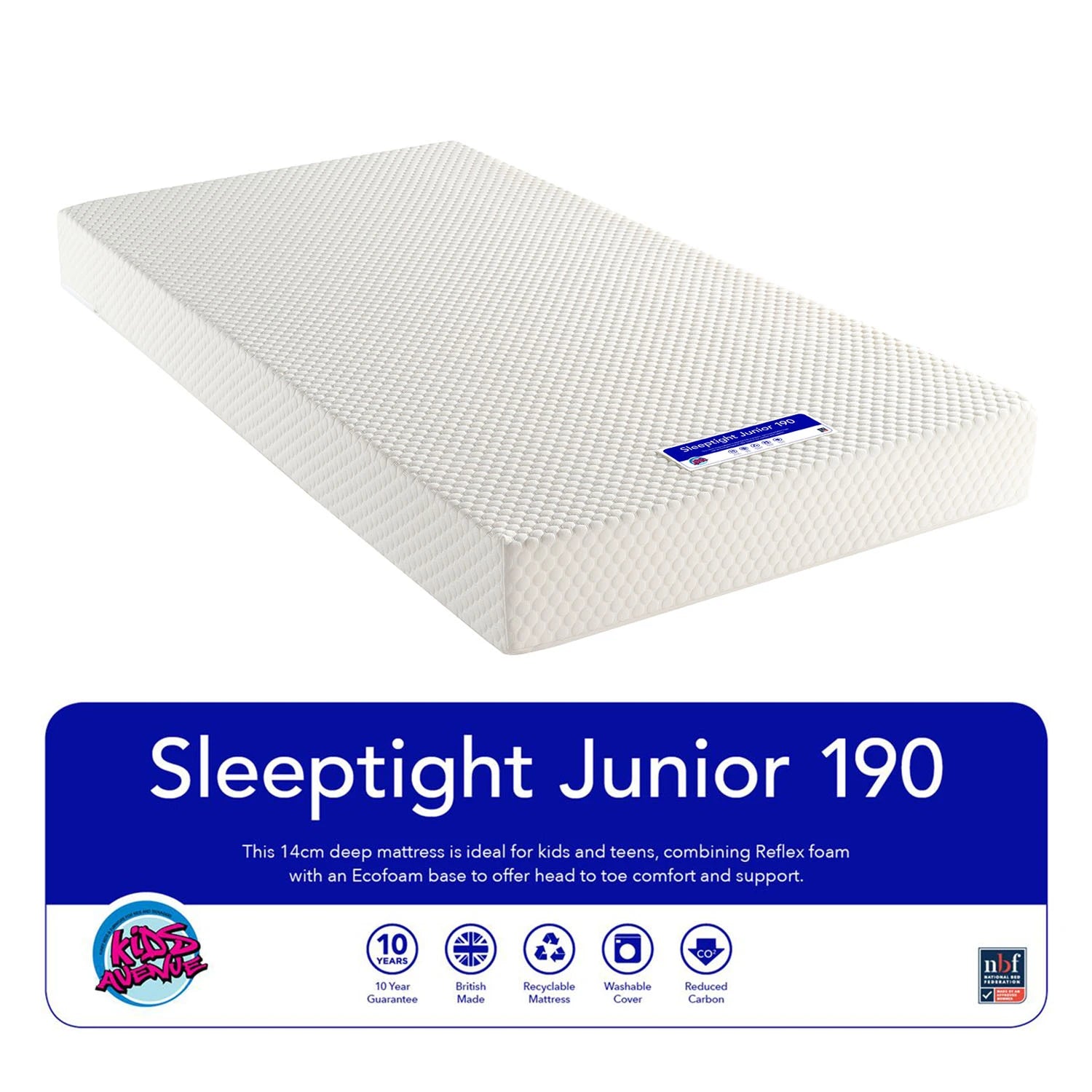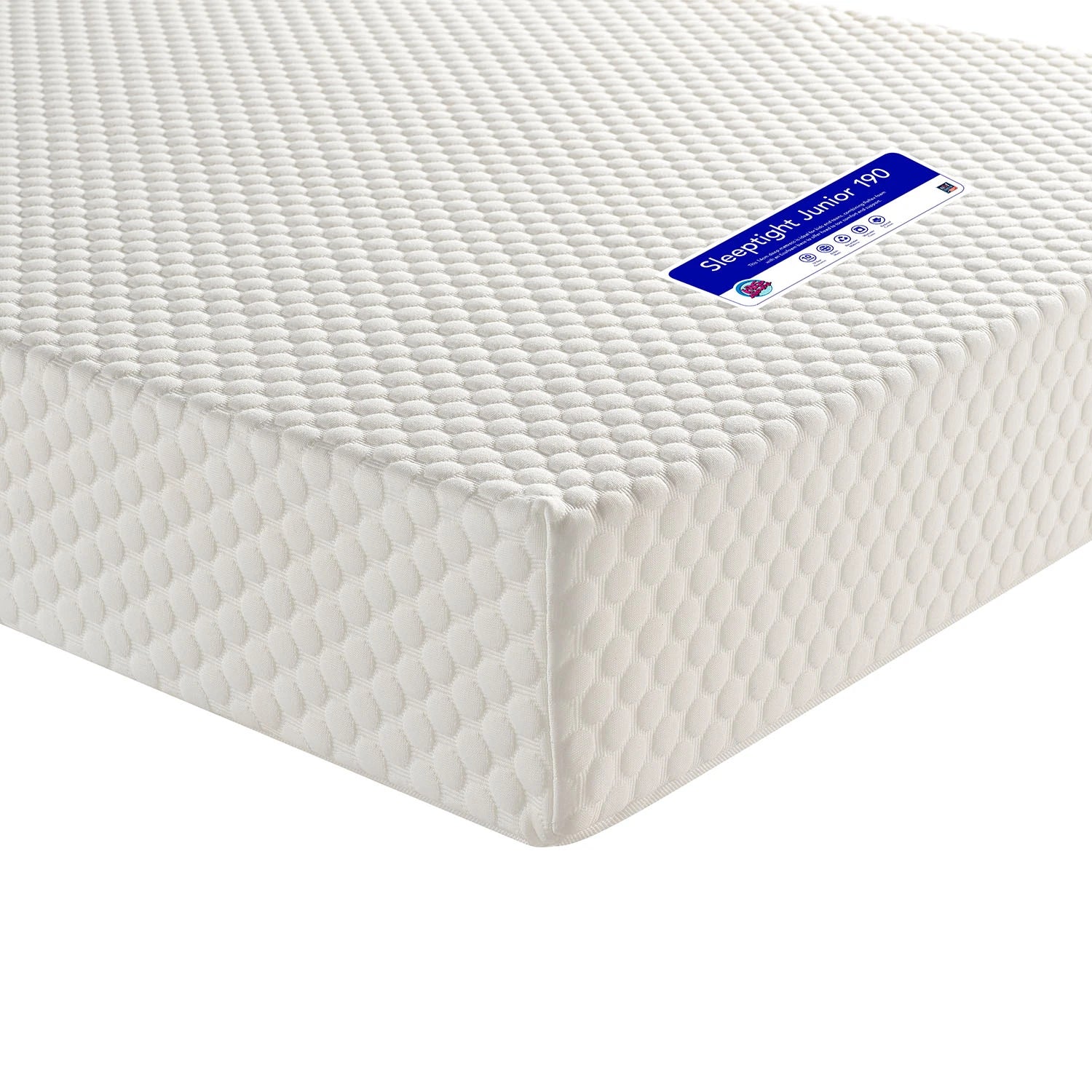 The sleeptight junior mattress will help your child get a good night's sleep. Made in the UK, this mattress features supportive Ecofoam and soft Reflex foam to provide comfort from head to toe. Plus, its 14-cm depth works well for both regular beds and bunk beds.