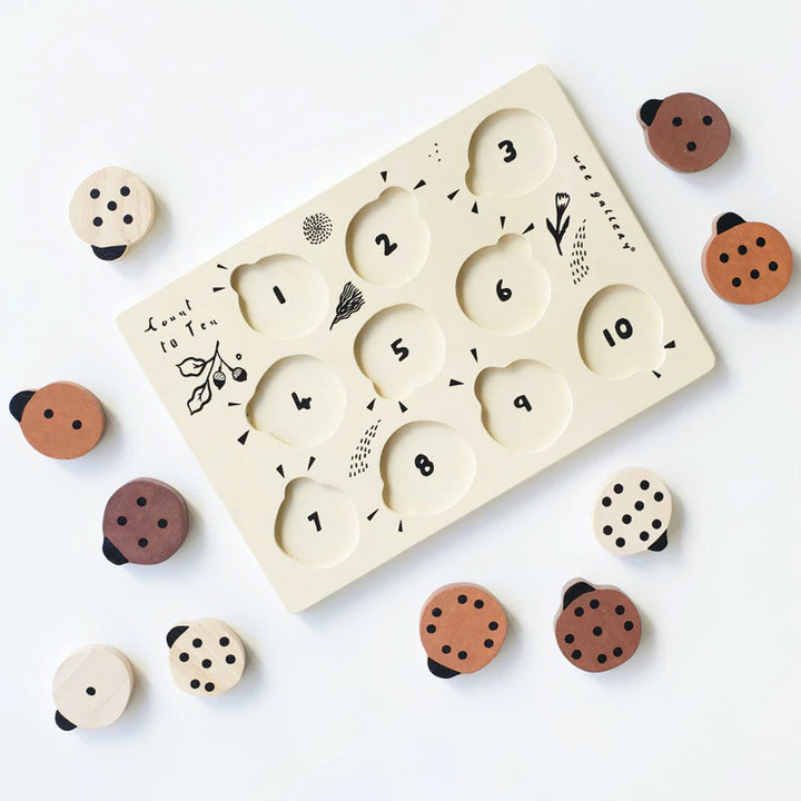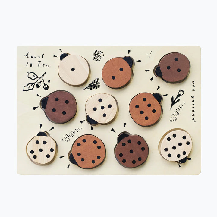 Our beautiful Wee Gallery count to 10 ladybug puzzle is a great way for your little ones to challenge themselves and explore numbers. Using the count to 10 puzzle with help them to improve their counting skills by matching the numbers to the dots on the ladybugs.