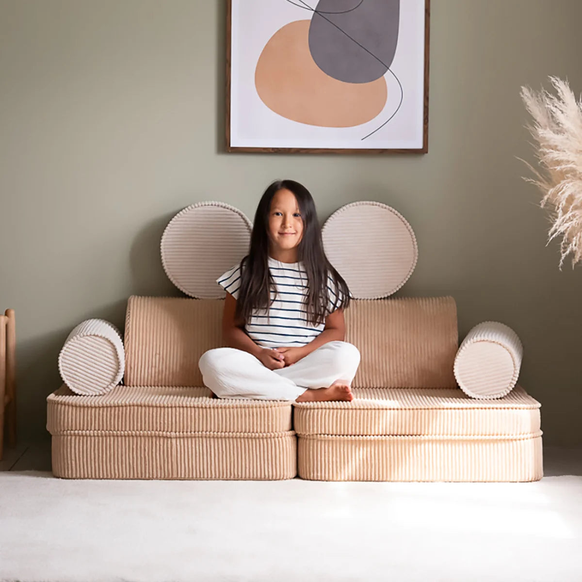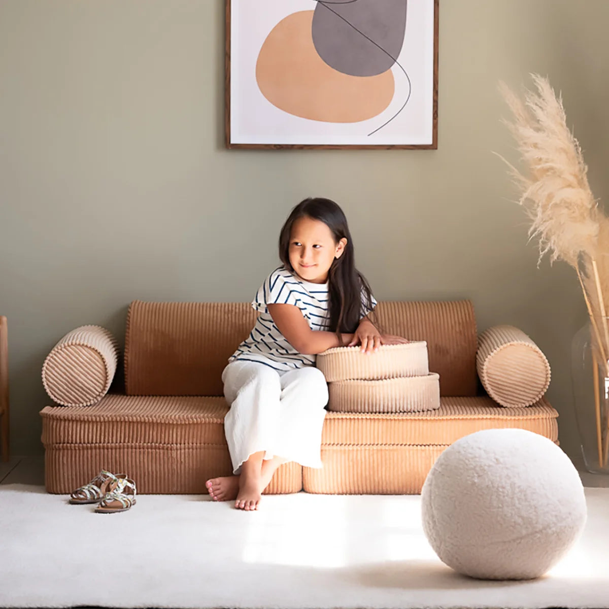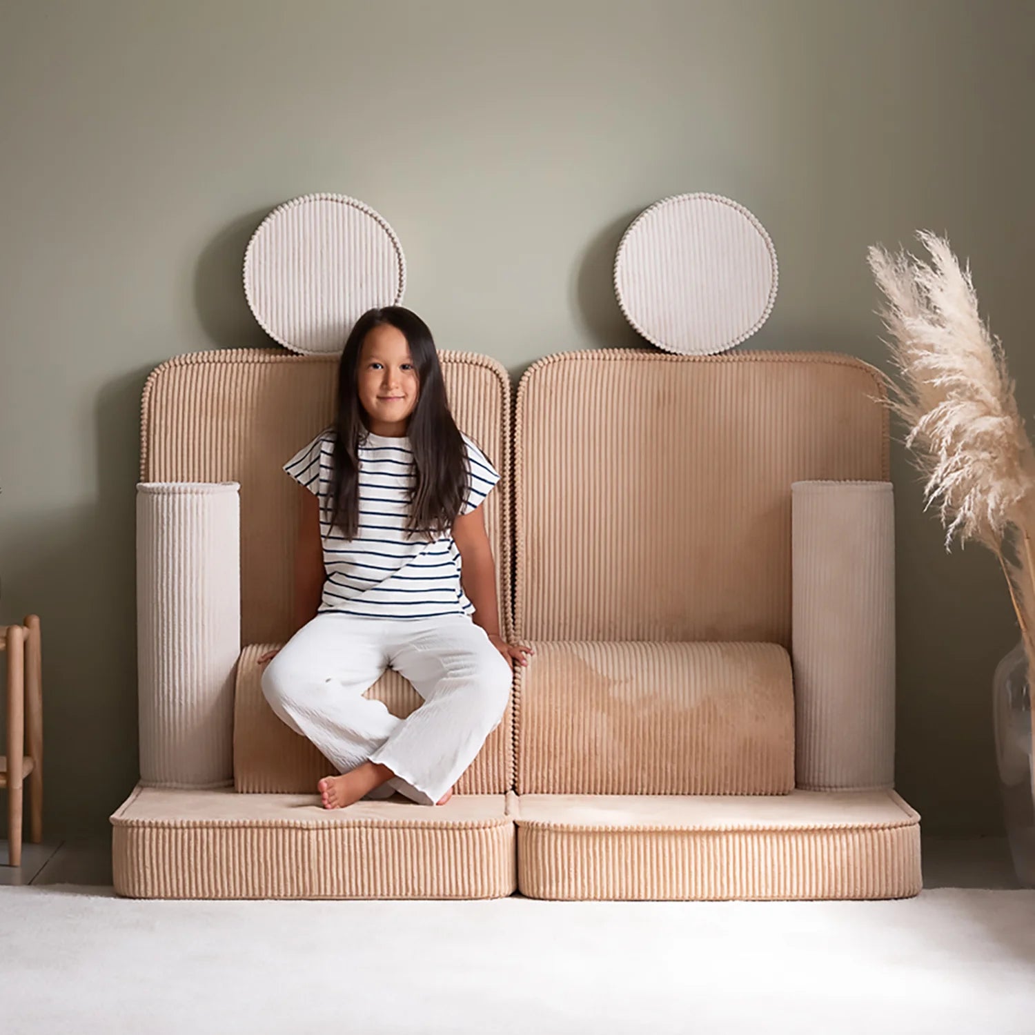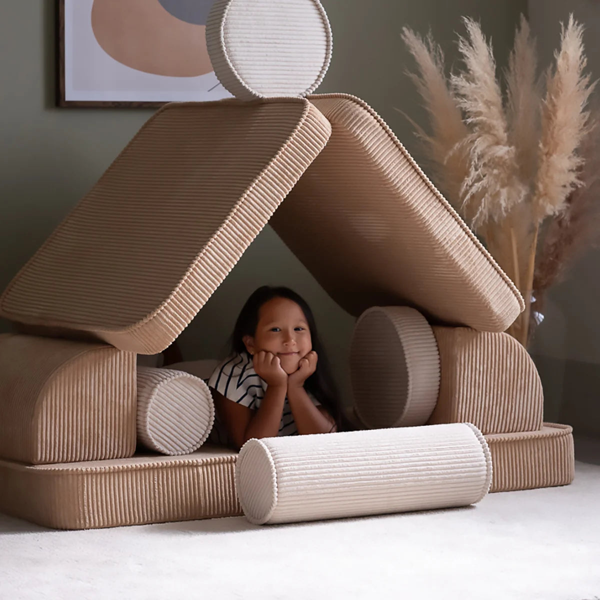 The Wigiwama children's modular sofa, or "Settee," is a practical and adaptable piece for kids. This teddy or corduroy fabric is safe for your kids. Also, it's durable and comfortable. Furthermore, its separate pieces allow children to use it as a play area, reading nook, sofa, or lounge area. Moreover, its neutral colour allows it to fit into any room.
