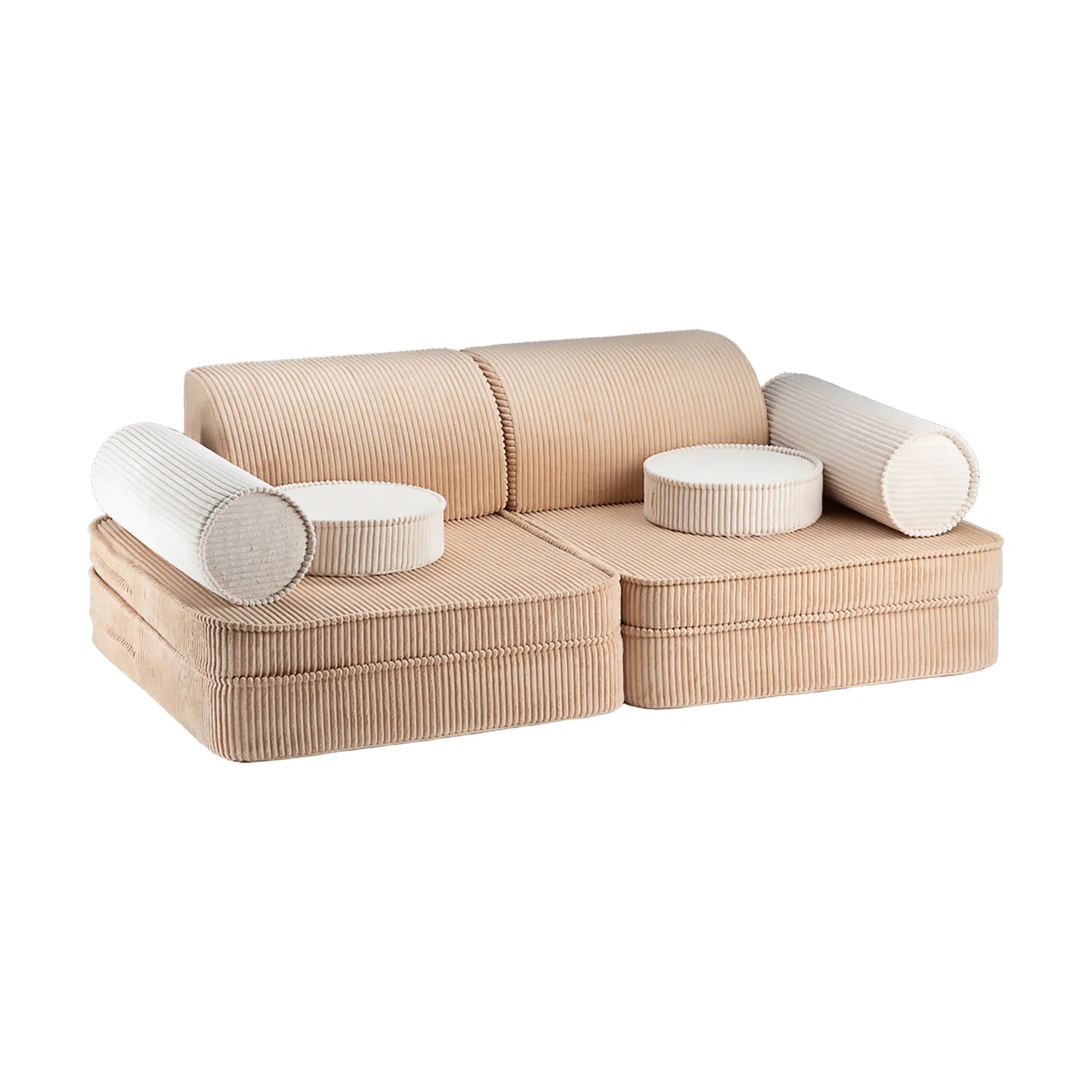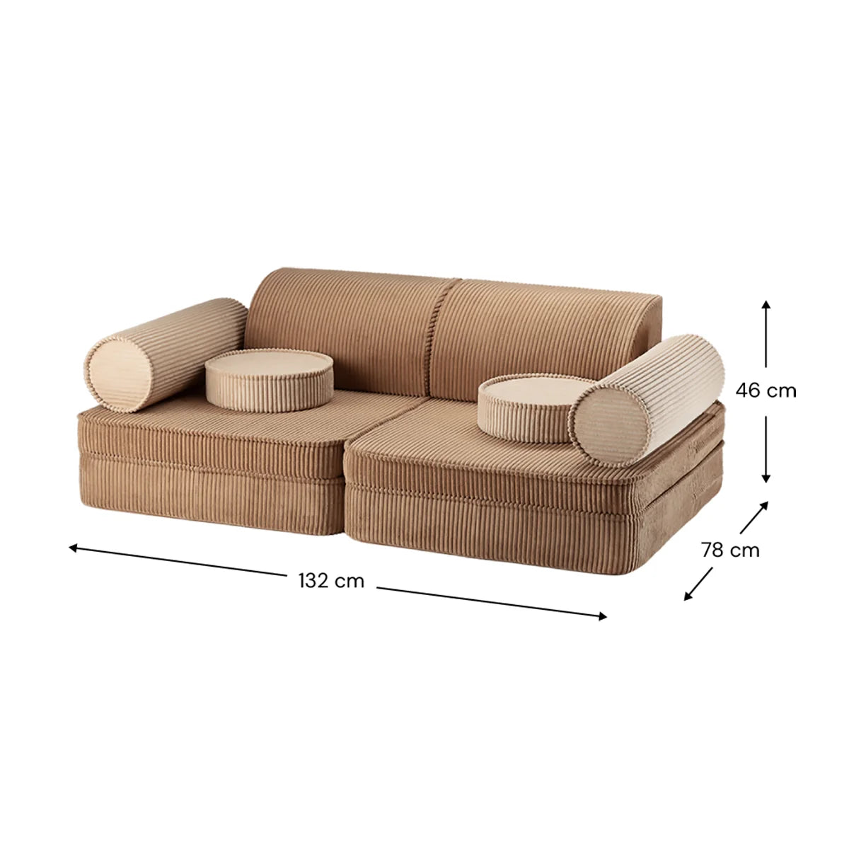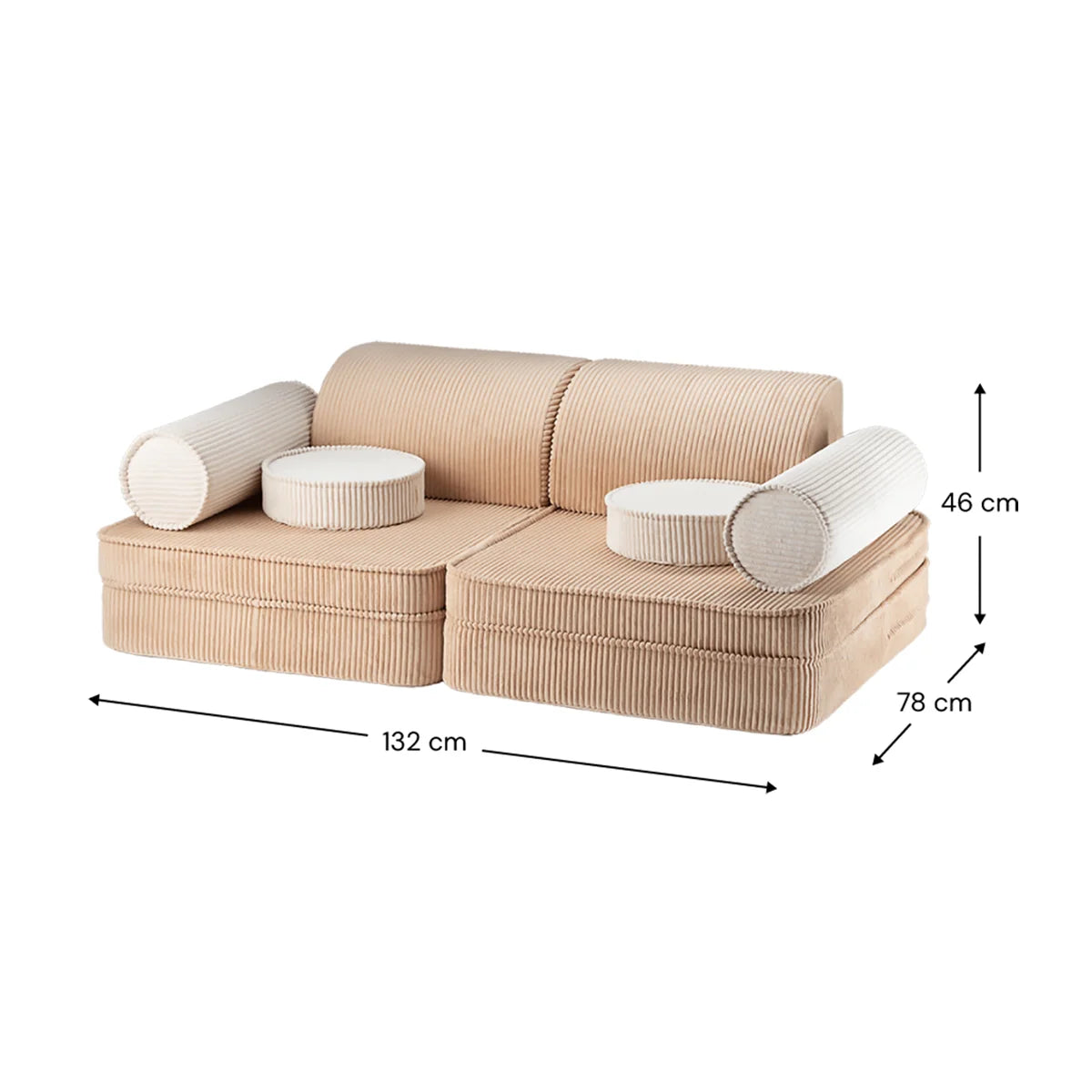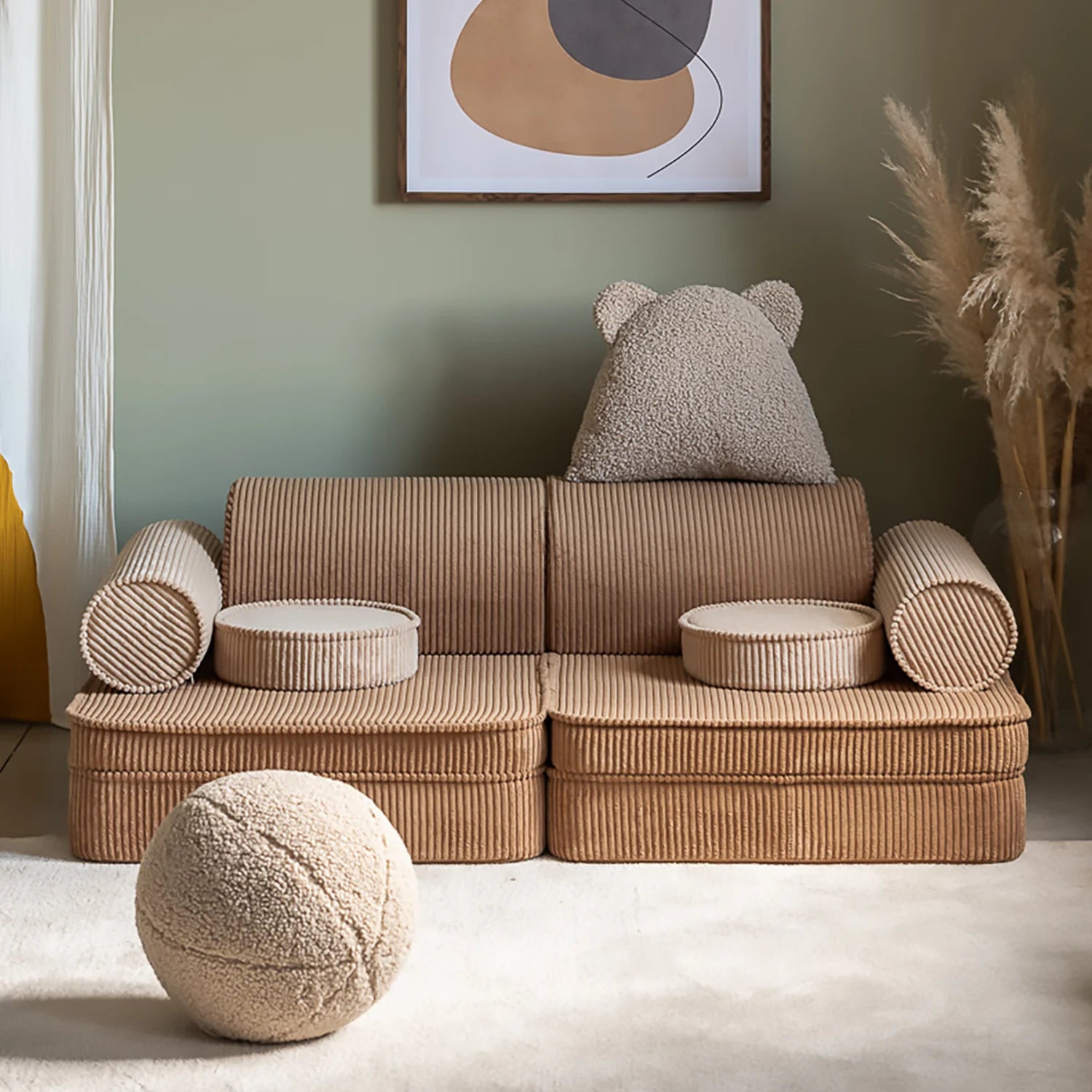 The Wigiwama children's modular sofa, or "Settee," is a practical and adaptable piece for kids. This teddy or corduroy fabric is safe for your kids. Also, it's durable and comfortable. Furthermore, its separate pieces allow children to use it as a play area, reading nook, sofa, or lounge area. Moreover, its neutral colour allows it to fit into any room.