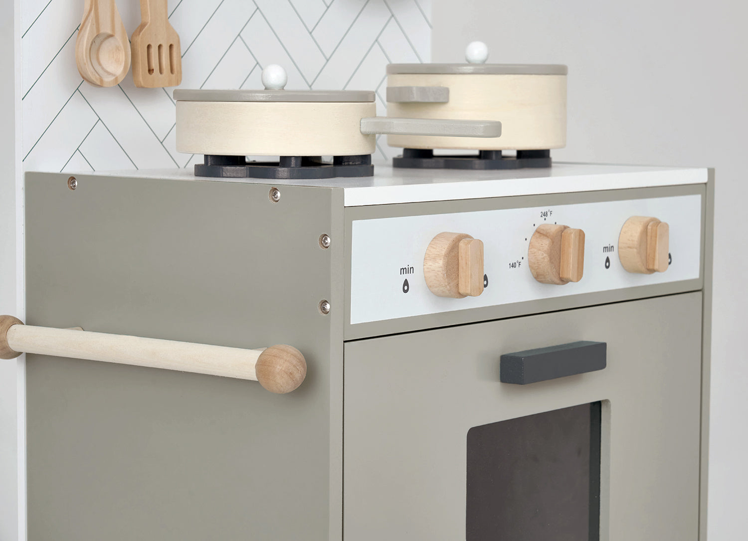 This adorable classic play kitchen in minor grey from hooga playroom can be a wonderful gift for little ones. It comes with 6 utensils that match the kitchen colour theme and offer many realistic features, like a tea towel hanger, a clickable turning knob, and so on. It has also won awards for best toy design for 3-5 year olds. Compact design and stylish mint colour make it perfect for any modern home.