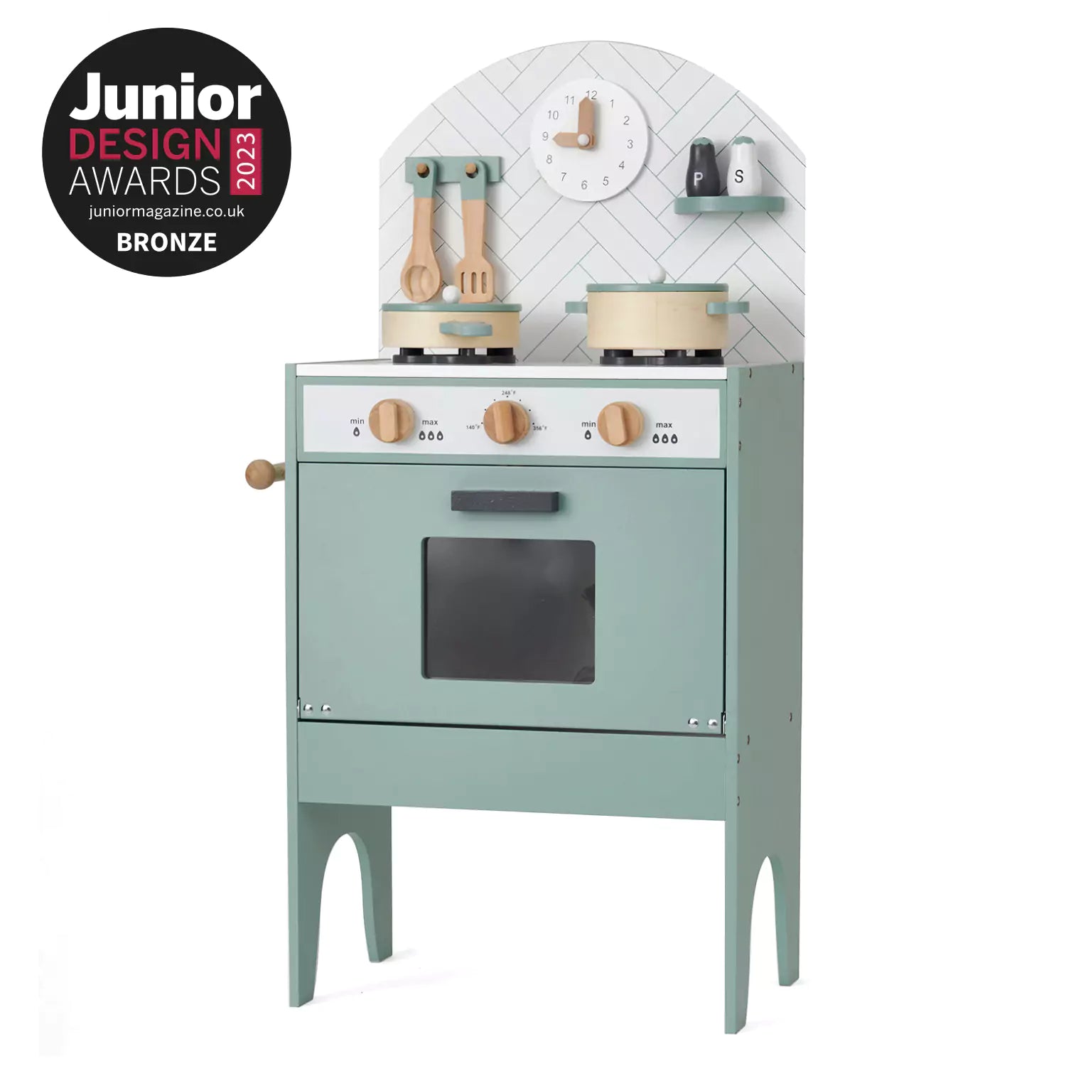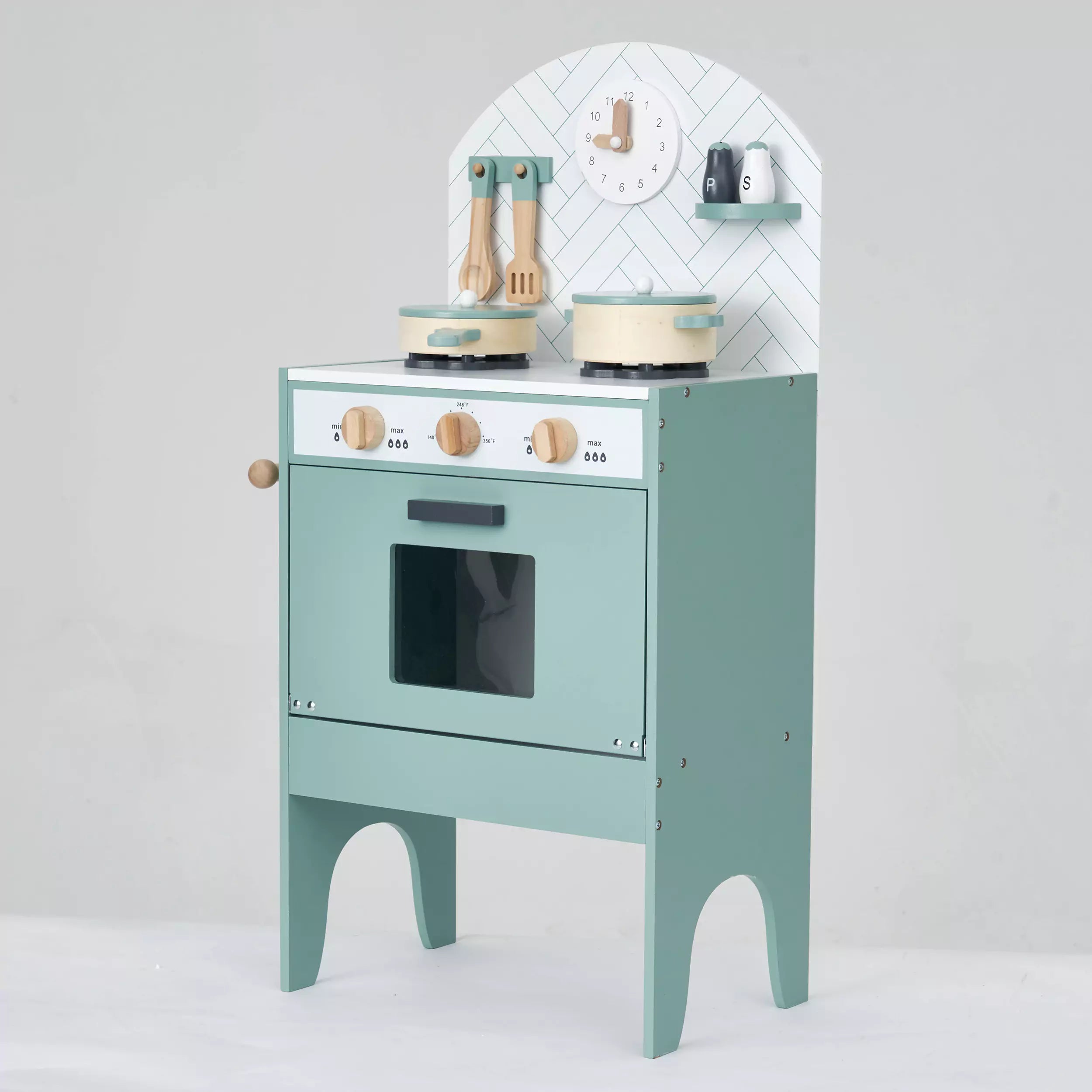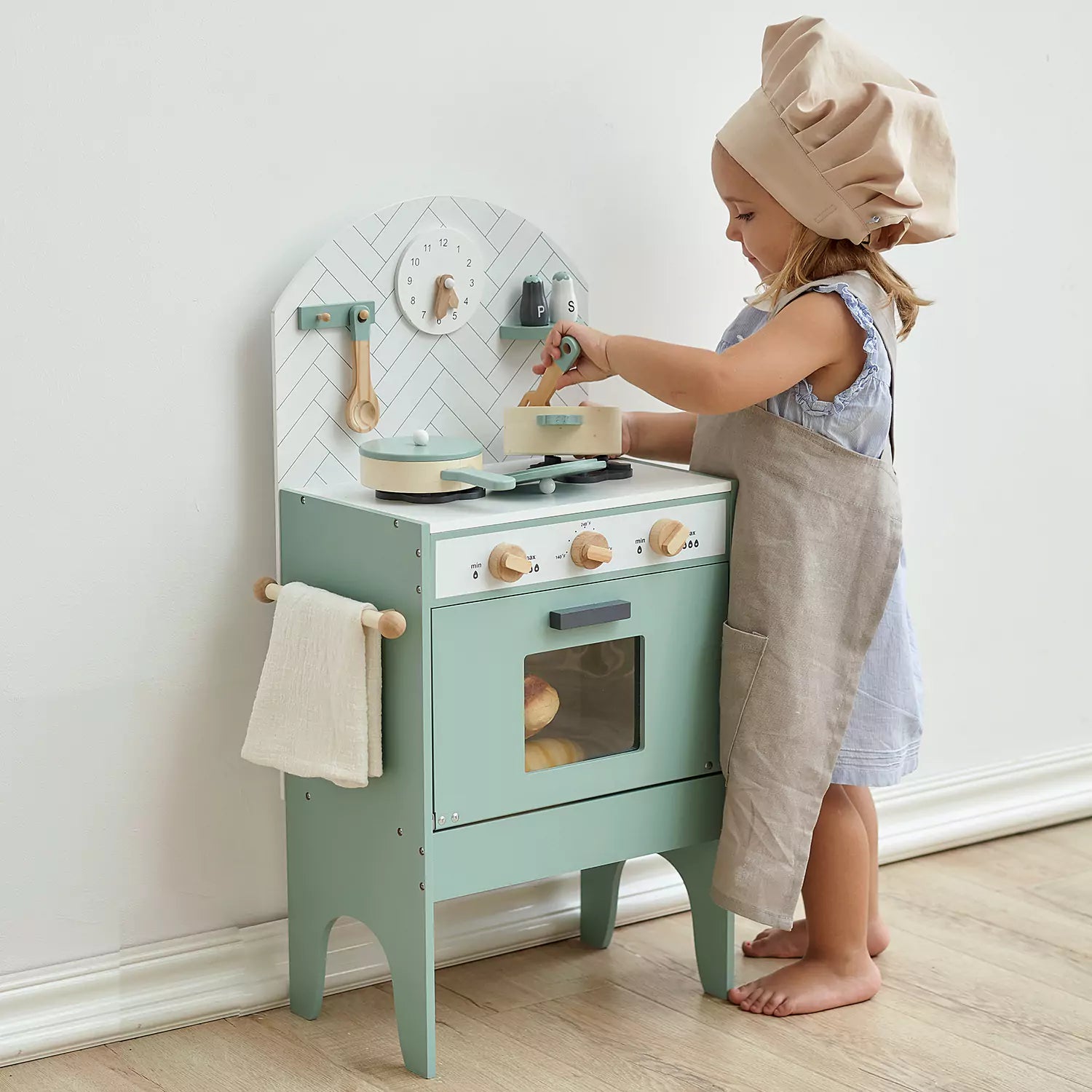 This adorable classic play kitchen in minor grey from hooga playroom can be a wonderful gift for little ones. It comes with 6 utensils that match the kitchen colour theme and offer many realistic features, like a tea towel hanger, a clickable turning knob, and so on. It has also won awards for best toy design for 3-5 year olds. Compact design and stylish mint colour make it perfect for any modern home.
