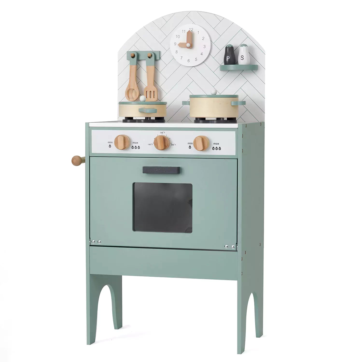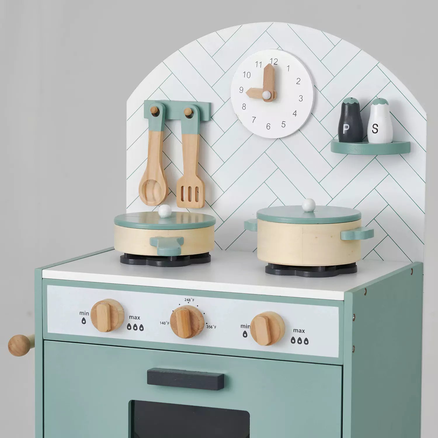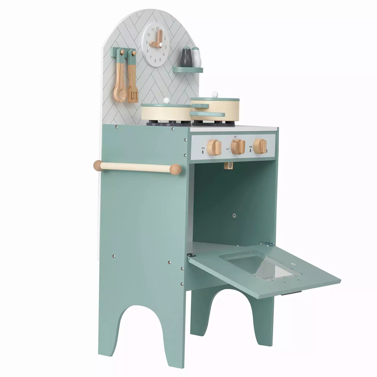 This adorable classic play kitchen in minor grey from hooga playroom can be a wonderful gift for little ones. It comes with 6 utensils that match the kitchen colour theme and offer many realistic features, like a tea towel hanger, a clickable turning knob, and so on. It has also won awards for best toy design for 3-5 year olds. Compact design and stylish mint colour make it perfect for any modern home.